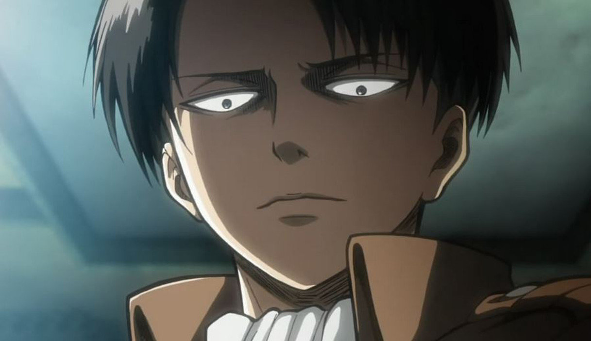 Sass queen Levi’s first line in the anime is shut up.