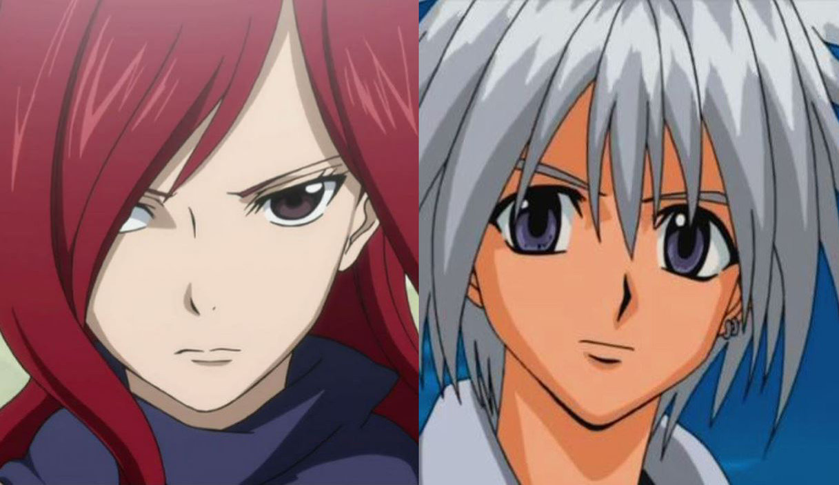 Fairy Tail’s Edolas Erza and Rave Master’s Haru Glory both use a weapon named “Ten Commandments” however Erza’s is a spear and Haru’s is a huge blade.
