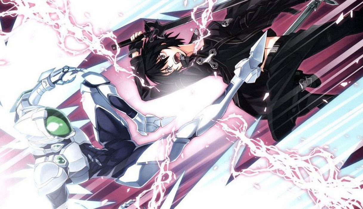 In the light novel, Accel World, there is a crossover chapter called "Versus" where Kirito from Sword Art Online fights Haruyuki.