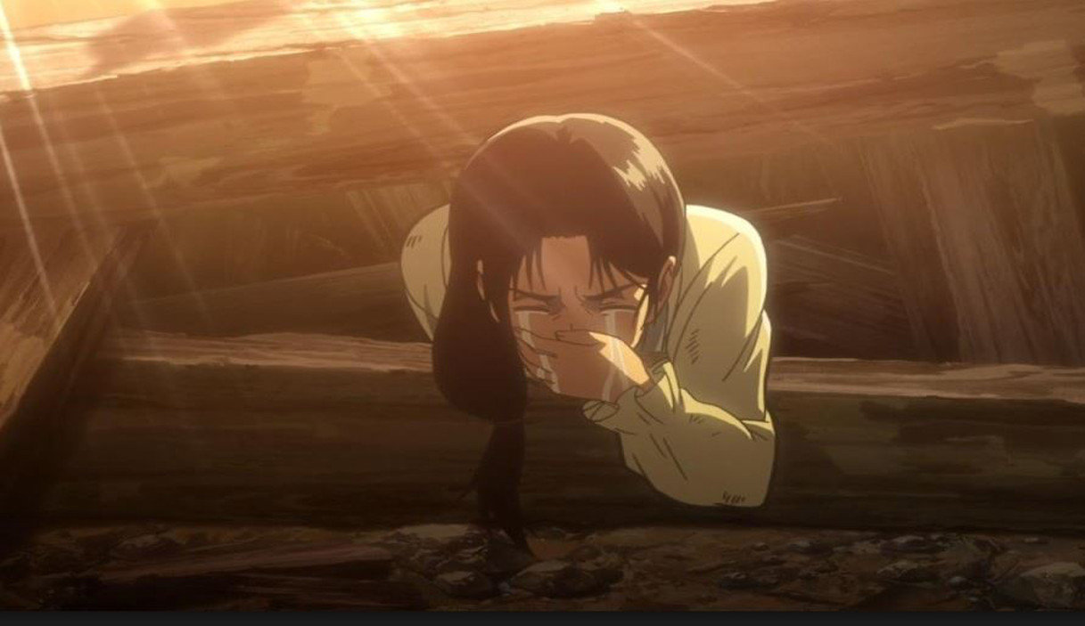Carla Jaeger from Attack on Titan actually lied about her legs being stuck under the building to distract the titan and to save Eren and Mikasa. She can be seen kicking them when picked up by the titan.