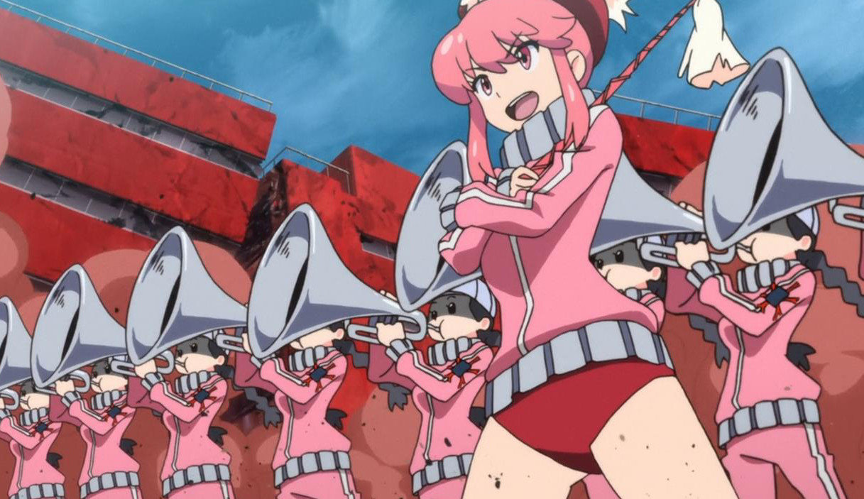 Nonon Jakuzure from Kill la Kill was originally supposed to have an electric guitar and a punk rock look, the creators scrapped it thinking it would be too much and ended up sticking with a school theme resulting in a marching band look. She would've used guitar riffs instead of classical music.