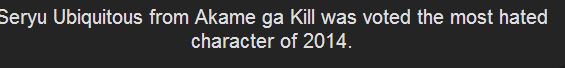 Seryu Ubiquitous from Akame ga Kill was voted the most hated character of 2014.
