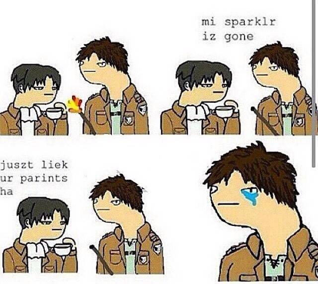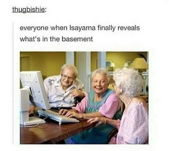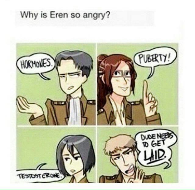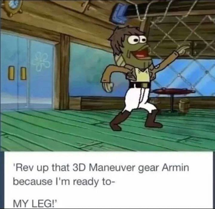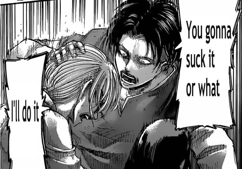 After a while it started to feel like it might even go full Naruto on us. I could be wrong so maybe I should catch back up again, but it felt like it was headed that direction more and more when I stopped (which was a couple chapters into eren being tied up in that cave but before they rescued him so basically right when they were fighting the anit-personnel 3DMG people in the cave. )