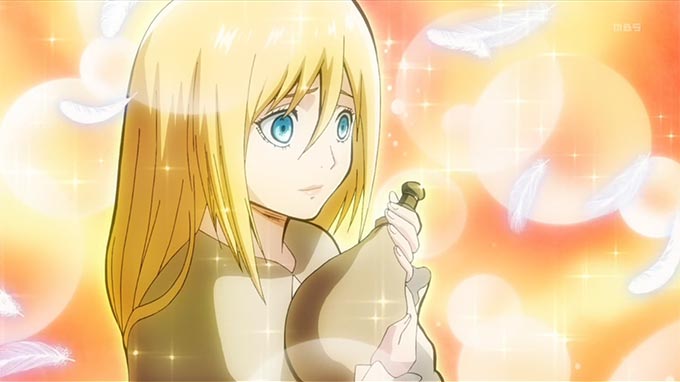 A little bit more complicated, but here's a short(-ish) rundown. First they fight a little, talk a lot, basically the king everybody knows as the king is just a representative of the true king, to protect him and Krista is actually the princess names Historia Reiss. Eren is brought to a underground cave where the true King is persuading Historia to turn into a Titan to eat Eren to gain his powers. It's complicated but basically Eren's father was a Titan that ate the then Titan king who posesses a special Titan power, Eren's father then turned him into a Titan and let himself be eaten by Eren, therefore granting Eren that special Titan power. But the current King wants it back so here we are. Historia refuses to kill Eren, things get chaotic when gun guy(forgot his name) sees the king with Titan serum, the King becomes a Titan himself, Eren masters hardening powers, the "King Titan" is killed, they decide to close wall maria with Eren's hardening powers, **** now hits the fan when it's actually an ambush by the Armor Titan, the Beast Titan, and an entire army of other titans...