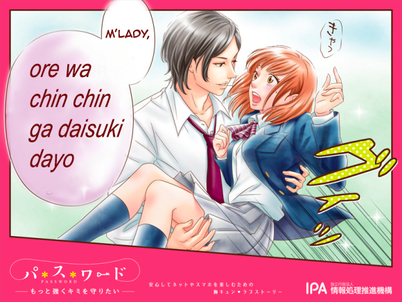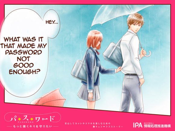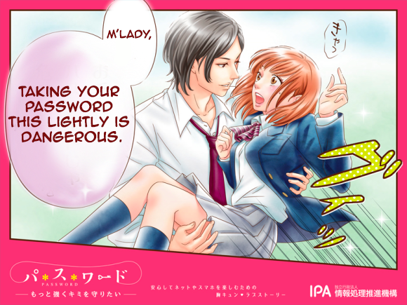 Japanese advertising Flag ichigoichie Channel: animemanga (See more...) next random - Fav Favorite Comment ✖ Top NextComment Japan's Information Technology Promotion Agency ran a series of posters in the style of a romantic shoujo manga on having good strong passwords. next Tags: Anime | manga | Japan THIS ! -ETLY IS l tii' J OUS. ... +153 Views: 13677 Favorited: 19 Submitted: 11/28/2015 Share On Facebook -Favorite +Favorite Unsub from ichigoichie Subscribe to ichigoichie Subscribe to animemanga Unsub from animemanga