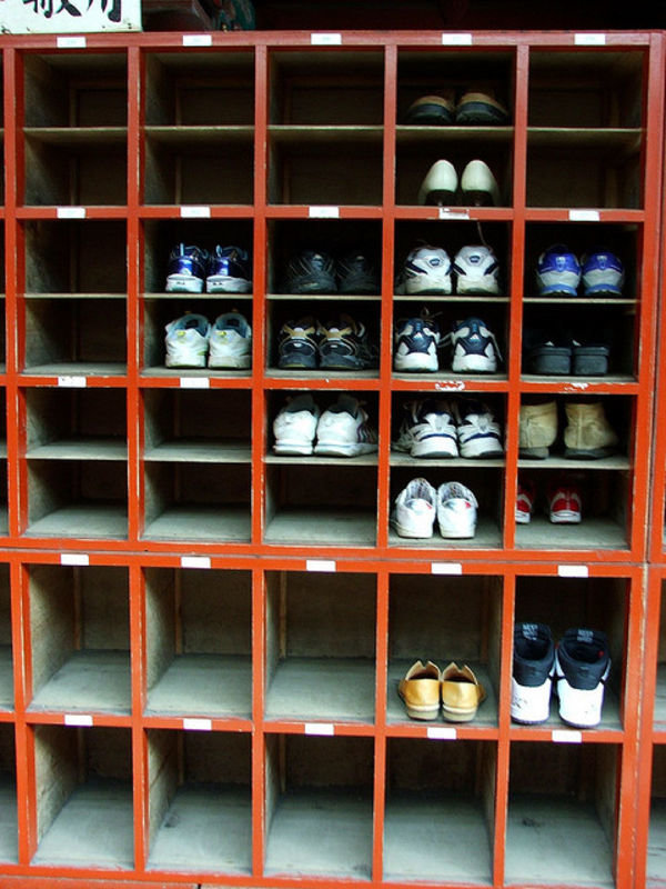 You'll always be given a place to put your shoes. You'll also be given slippers to wear.