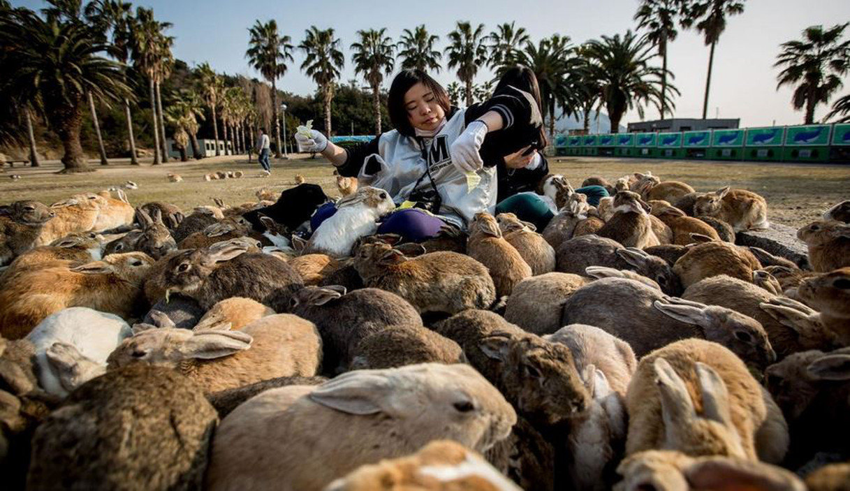 Is your boss getting you down? Feeling stressed? Then go to Rabbit Island! Rabbit Island is the nickname of the small island of Okunoshima, you probably already guessed but the island is full of rabbits roaming around after flourishing in the predator free environment. The rabbits were first brought to the island during WWII when the island and rabbits were used to test the effects of poison gas.