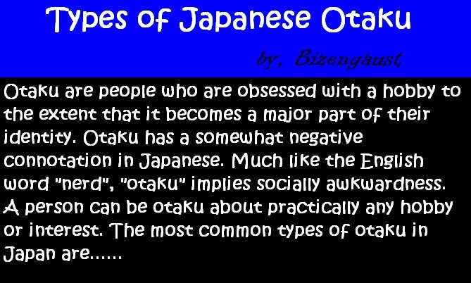 Types of Japanese Otaku