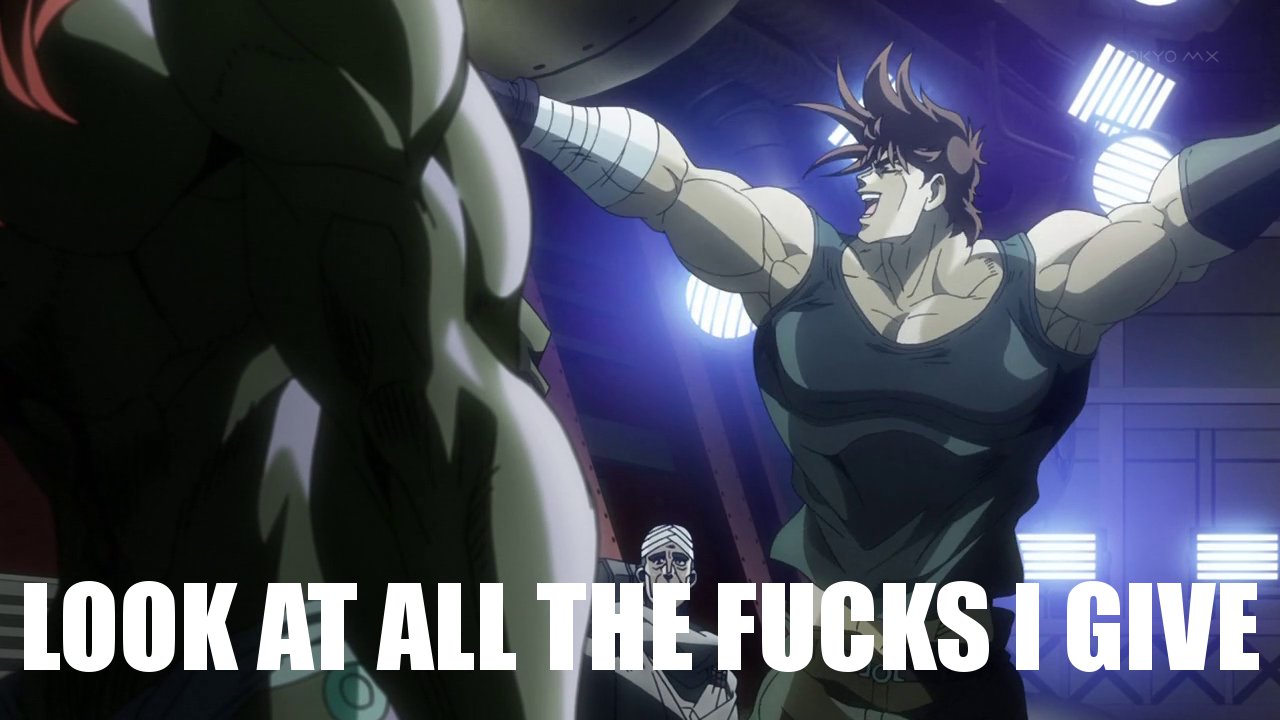 I'm only up to stone ocean. It'll take time for me to get there okay.