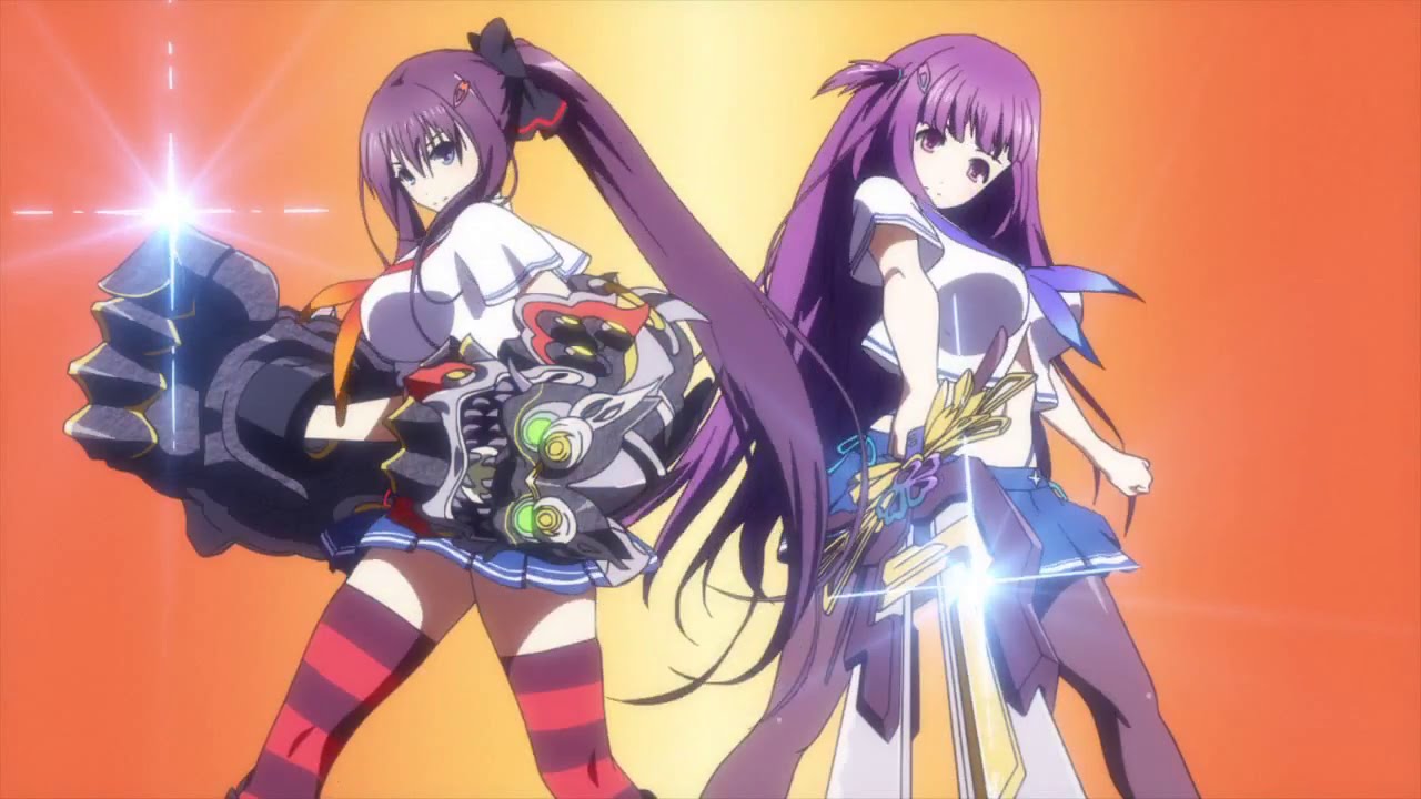 Kissing busty lesbians transform into swords in Valkyrie Drive 10/10 Demo would be proud