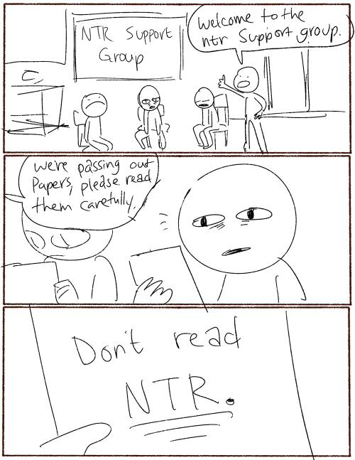 Things like vore and scat and stuff like that are physically disturbing. NTR, (Or Netorare), is emotionally disturbing. Nobody is gonna kill themselves because some weird **** like vore or vomit happens. But someone get's NTR'd or an emotionally unstable person gets into an NTR comic? Not good time.