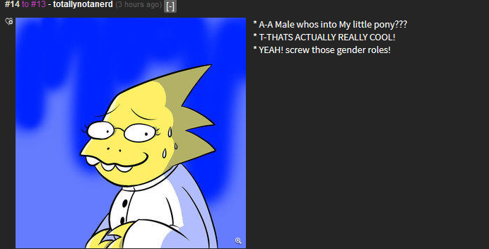 I know, but I'd prefer to give someone my undivided attention when possible. anyway, thank you for talking to me and being really polite about it. I really just hope people don't hate on undertale as much as they universally hate bronies (it seems anyway). I mean, if you roll a pony, you get red thumbed. I'd hate to see the same with undertale characters. I know it's a lot to ask for the internet not to hate something, but I just want the blow to be a bit cushioned as it were.