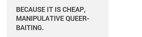 So being straight adds zero character development but being gay apparently doesn't. Glad I finally understand shipper logic.