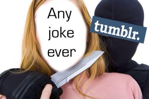 This image is wrong. Tumblr is portrayed holding a knife to a woman's neck.