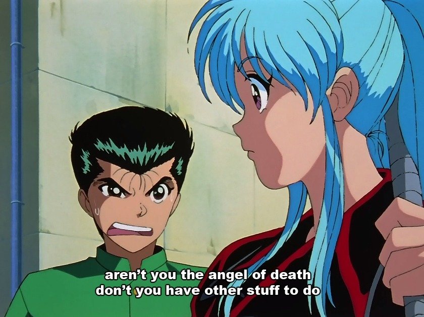 But for real tho, does she seriously not have anything else to do other than follow yusuke? 150,000 people die everyday, and she can just ignore them to watch him fight?