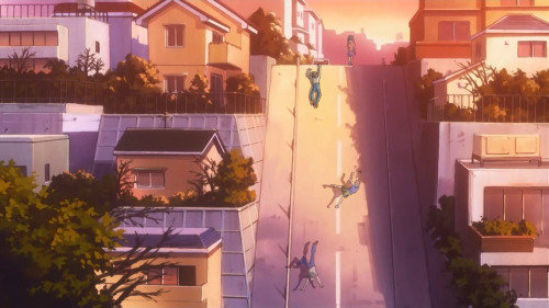 Because it's drawn to give off an angle they draw it flat like that in order to generate the illusion of 3d on a 2d plane but then either someone edited it or this is a gag in the show where its actually just a steep drop down. A play on that illusion vs the reality.