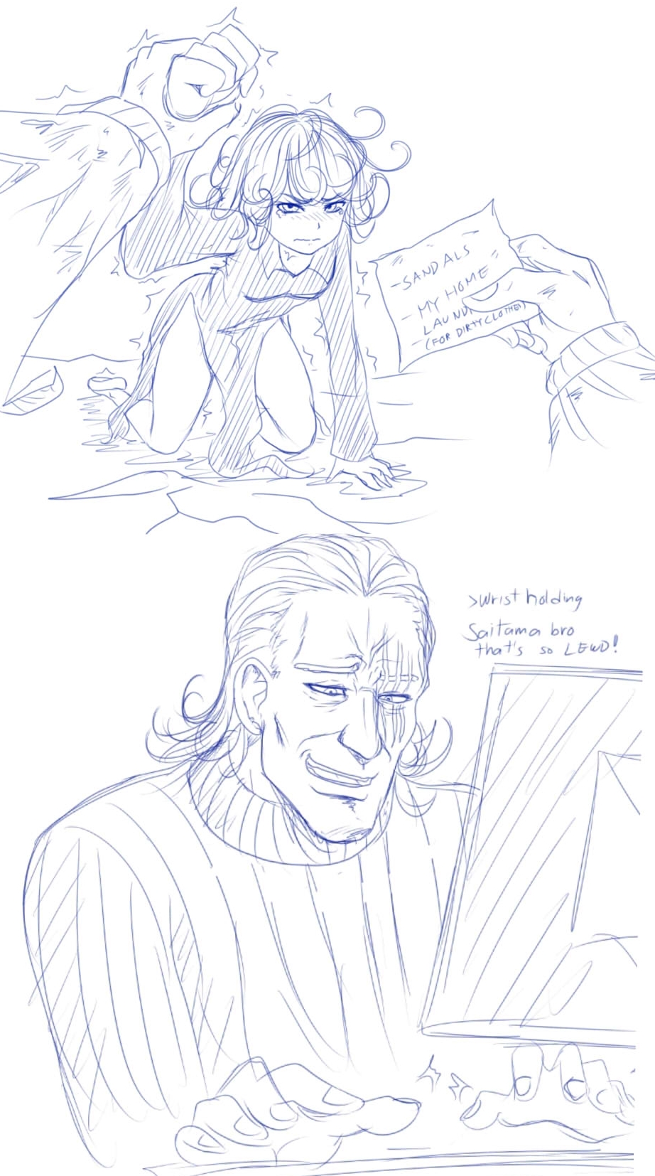 The most recent chapters of the webcomic were a goldmine for shipping crap between Saitama and Tatsumaki He bear hugged her and jumped outside of the Heroes Association HQ so she wouldn't wreck everything when she started having a hissy fit Should've slam dunked her right into the Heroes Association landfill