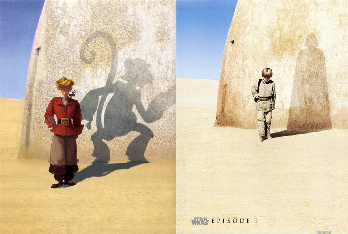 Escape from Monkey Island: The promotional poster of Guybrush was a direct reference to Star Wars: The Phantom Menace.