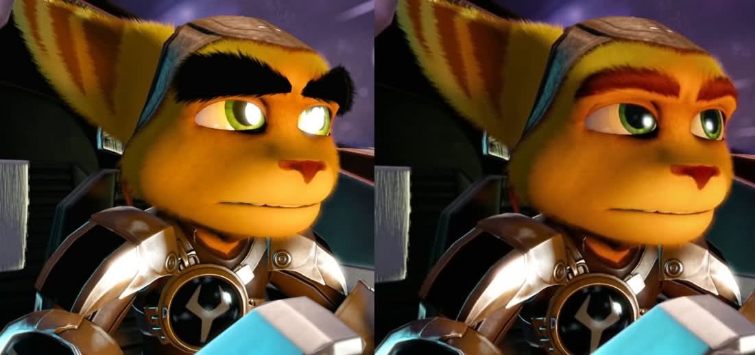 Ratchet & Clank: A Crack in Time: Ratchet had black eyebrows and shiny eyes in the japanese localization of the game.
