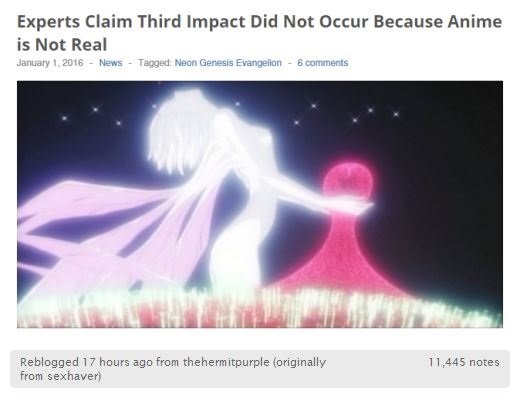 That being said, the Third Impact is what the humanity fears will happen if the Angels manage to find Adam When in fact it's the humanity that's trying to force the Third Impact, for many reasons. The higher ups are on it basically because they want to reach paradise, the main dude's father wants to get the angel's power in order to control the apocalypse just enough so he can see his dead wife, no idea what he wanna do after that.