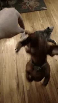 I watched this clip, an a few others, this isn't the first time this guy let a dog get it's nose or tongue caught. As cute as the gif is, the actual clip that poor pup cried so badly. He would have all kinda of animals on a single table, way more than he could manage, and in one of his videos the camera goes dark but you hear a bird take off and a smacking noise, an the guy says he's dead, or he broke his neck, something along those lines. It really really made me dislike this guy's stuff. An now the sight of it always just makes me sad...