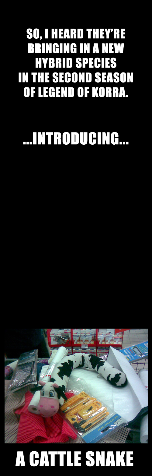 A New Species Flag Kristanna Channel: bendingtime (See more...) next random - Fav Favorite Comment ✖ Top NextComment Get it?! GET IT?! Not a rattle snake, but a CATTLE snake?! GET IT?! GET IT?!?! Oh god, I'm so alone. next Tags: avatar | legend | of | korra | cattle | Snake M, I HEARD THEY' RE A HEW HYBRID SPECIES m SHERRI] SEASICK RE RE HIERRO. ... +300 Views: 14588 Favorited: 4 Submitted: 08/22/2012 Share On Facebook -Favorite +Favorite Unsub from Kristanna Subscribe to Kristanna Subscribe to bendingtime Unsub from bendingtime