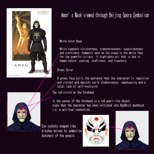 I think that it is awesome to know this kinds of things, but I will have to dispute on some things. I do not disagree with the white color attributes and the spiritual mark (and the knife eyes to someextent ), but the part about the green color is just wrong. Amon is far away from impulsive or violent and he is probably one of the best self-restrained villains in any show I have ever seen