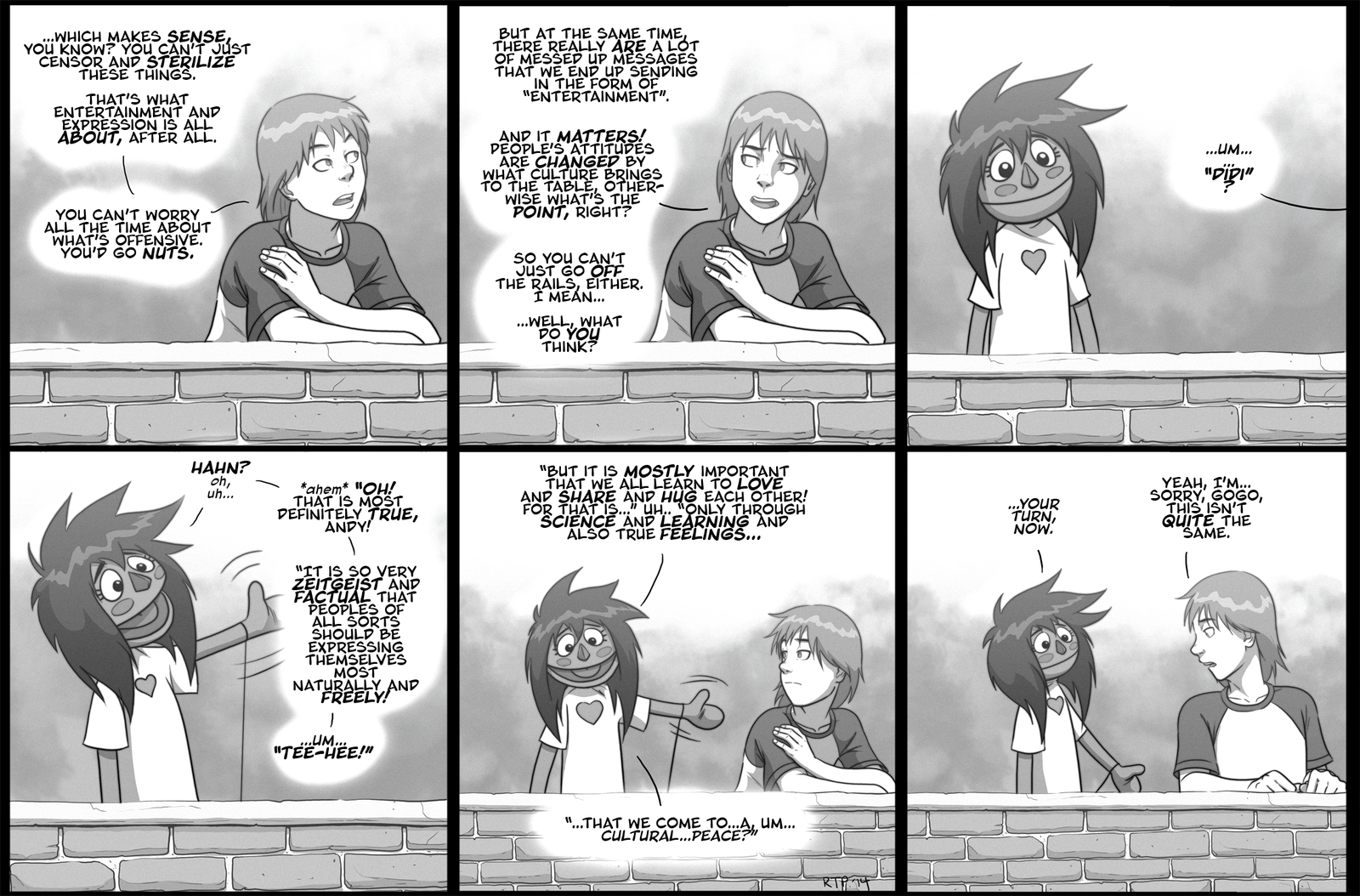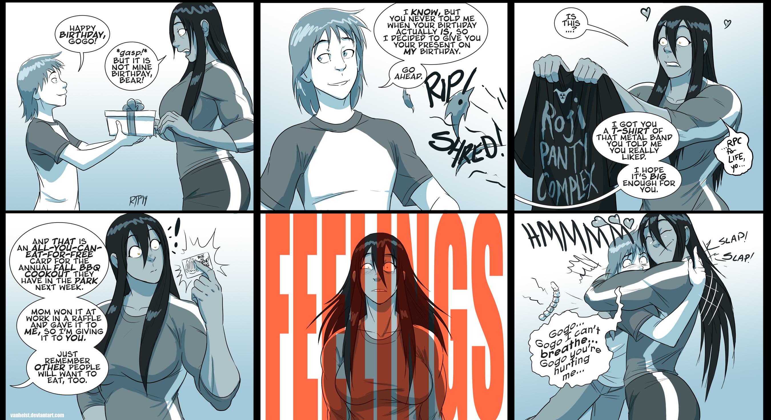 They say the way to a man's heart is through his stomach, so does that mean Gogo's more manly than most? Then again, half of the gift was clothing . . . for a heavy metal band. Either way, seems like Andy's gotten exceptionally good at figuring out what she likes. More on that next Wednesday, which, by the way, you will definitely want to tune in for. No spoilers or anything, but I've heard it contains some pretty important plot development! In fact, my advanced reviewer, R. Paul, called it "Happening."