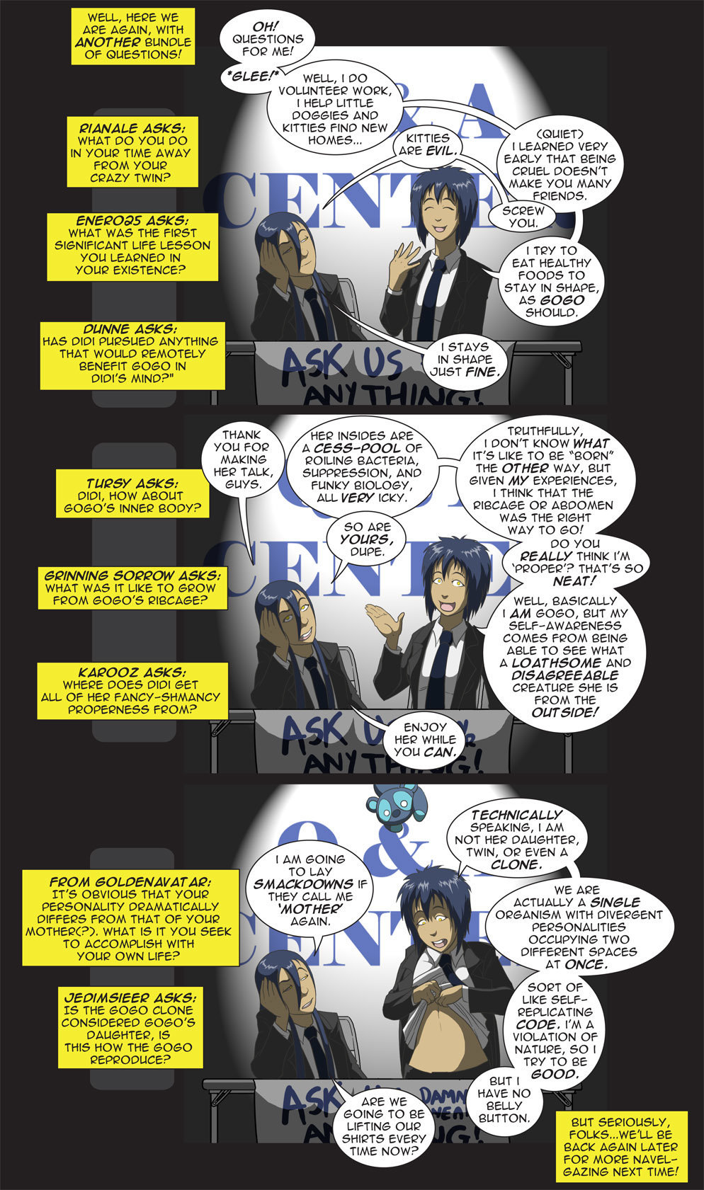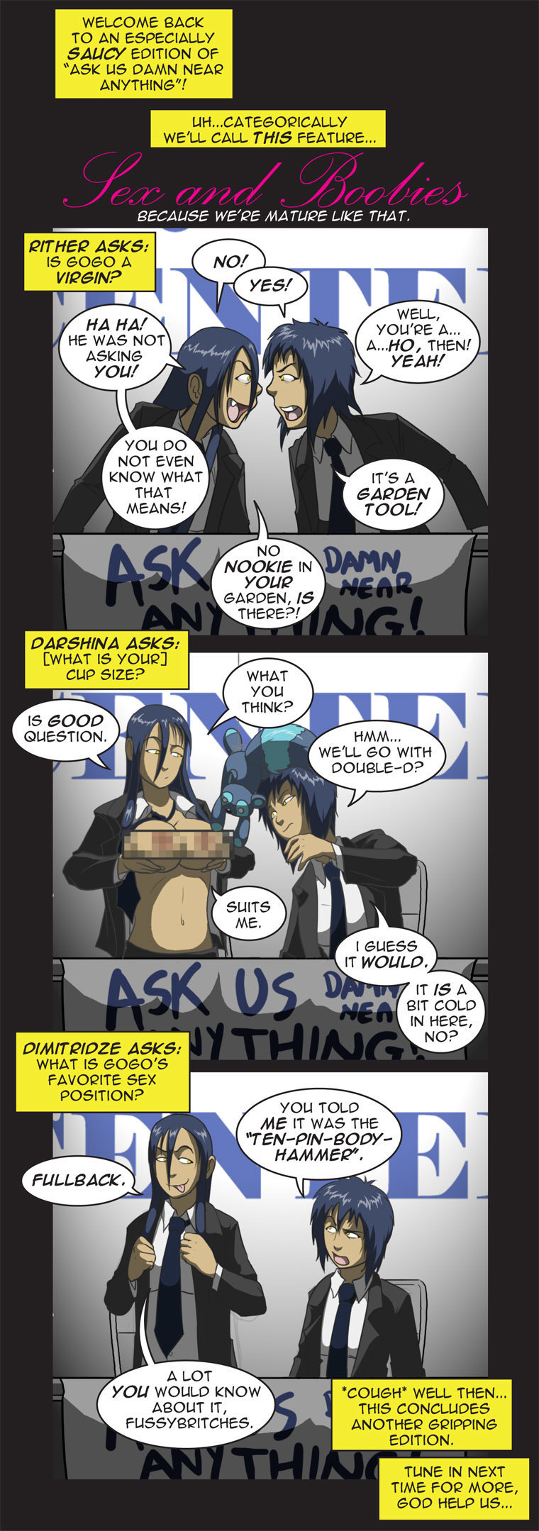 Jokes aside, this will actually answer some of those pesky questions you all have been bugging me with recently. especially that one guy who was getting frustrated that there was no mature content Again, this is in extras because I can practically hear the fourth wall shattering. Though I suppose we could just view this as another one of Gogo's abilities . . .
