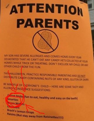 Now, instead of passing the burden of parenting properly onto OTHER parents, try letting your child donate all his candy to something or other. Let him give it to his friends.