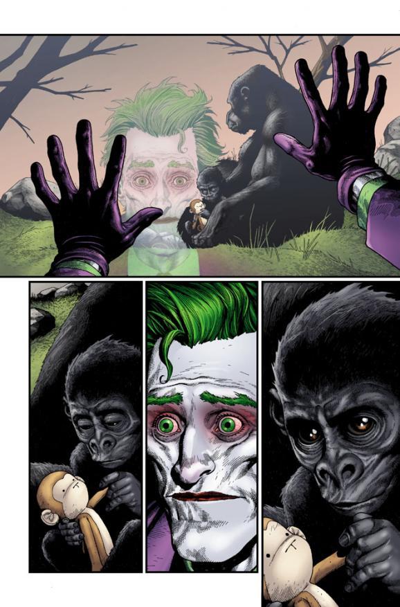 When the joker was little, he was abused by his aunt and she took his stuffed monkey away and ruined it. He breaks into the enclosure gasses the mother gorilla and steals the baby gorilla and his stuffed monkey intending to raise the gorilla as his child with a better childhood than he had.