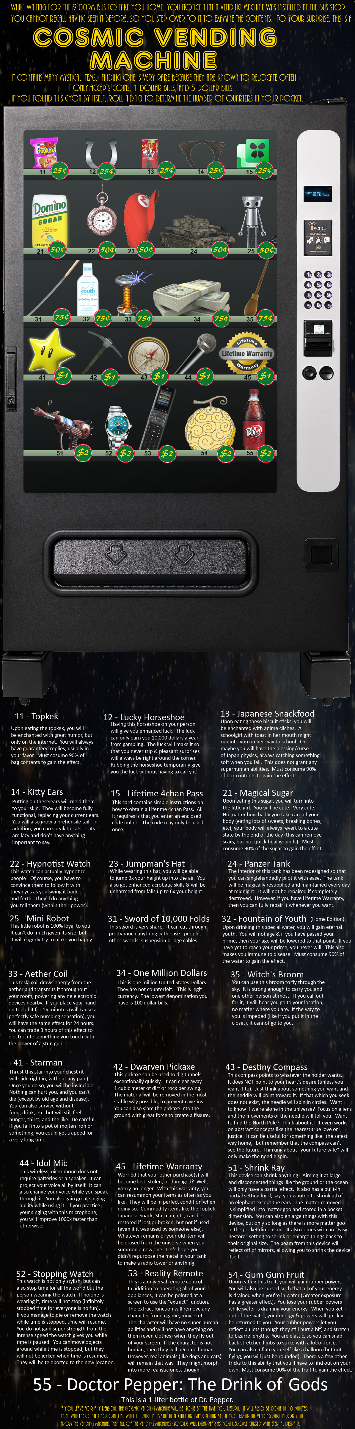 Awesome. So what to get with 9 quarters. First thing is definitely the Dr. Pepper...so that is 8 quarters. With my last quarter....I guess I will take the Topkek to go with my Dr.Pepper. A good late night snack any day of the week.