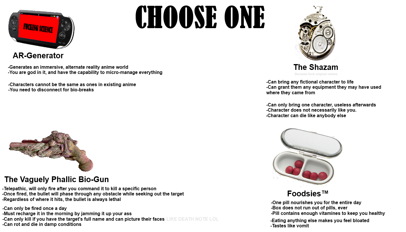 foodsies i guess? AR-generator would make me waste my life away and it saves a ******* of money on food and energy. i can live with only enjoying drinks.