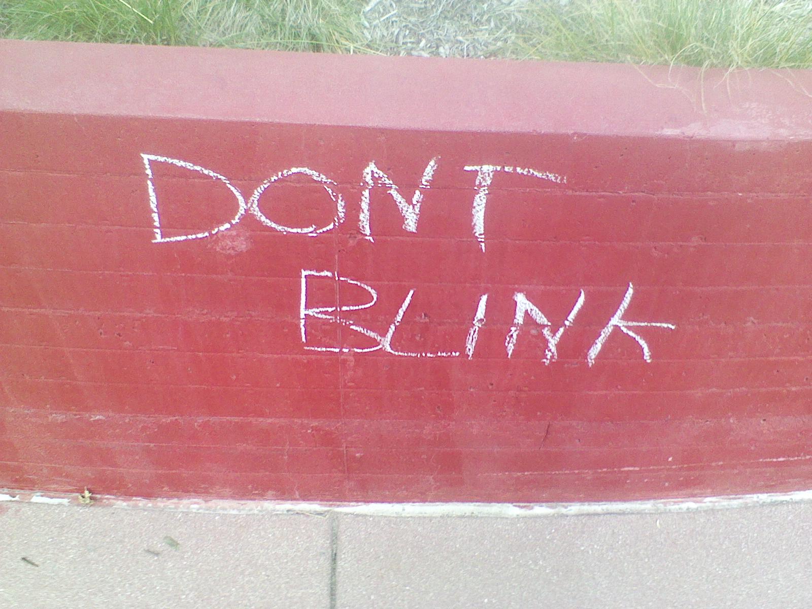 The Doctor Who fanclub at my university went around writing Bad Wolf and Spoilers and Don't Blink on like EVERYTHING. They even did a giant mural of an exploding TARDIS in chalk. Grabbed a picture for my Whovian friend in California.