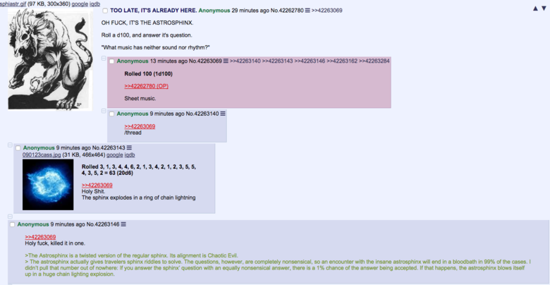 is a twisted version cf the regular sphinx. Its align merit is Chaotic Evil.,