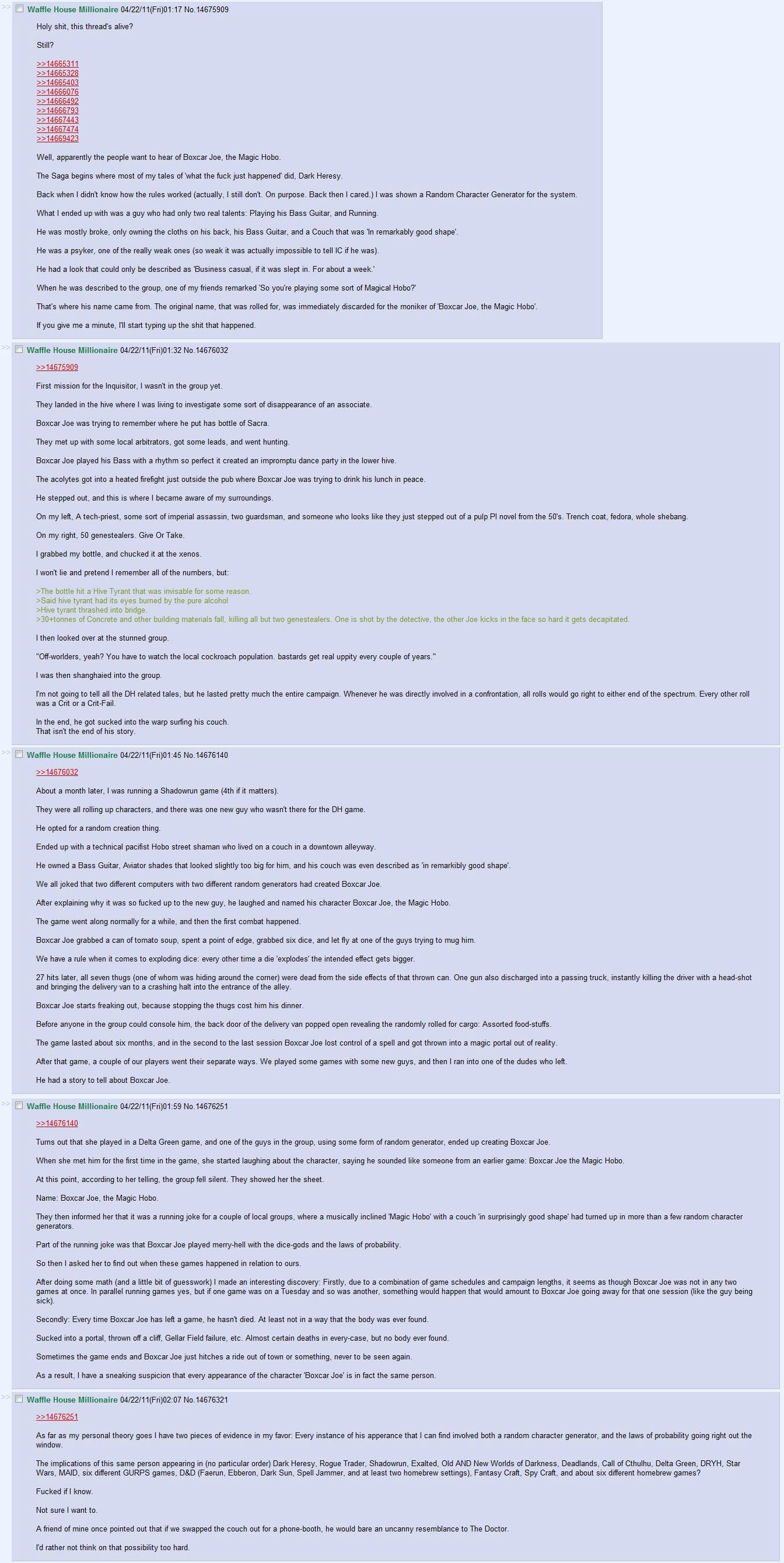Awe explaning why it was so ****** new guy, we laughed and named wits character . the Magic Hobo