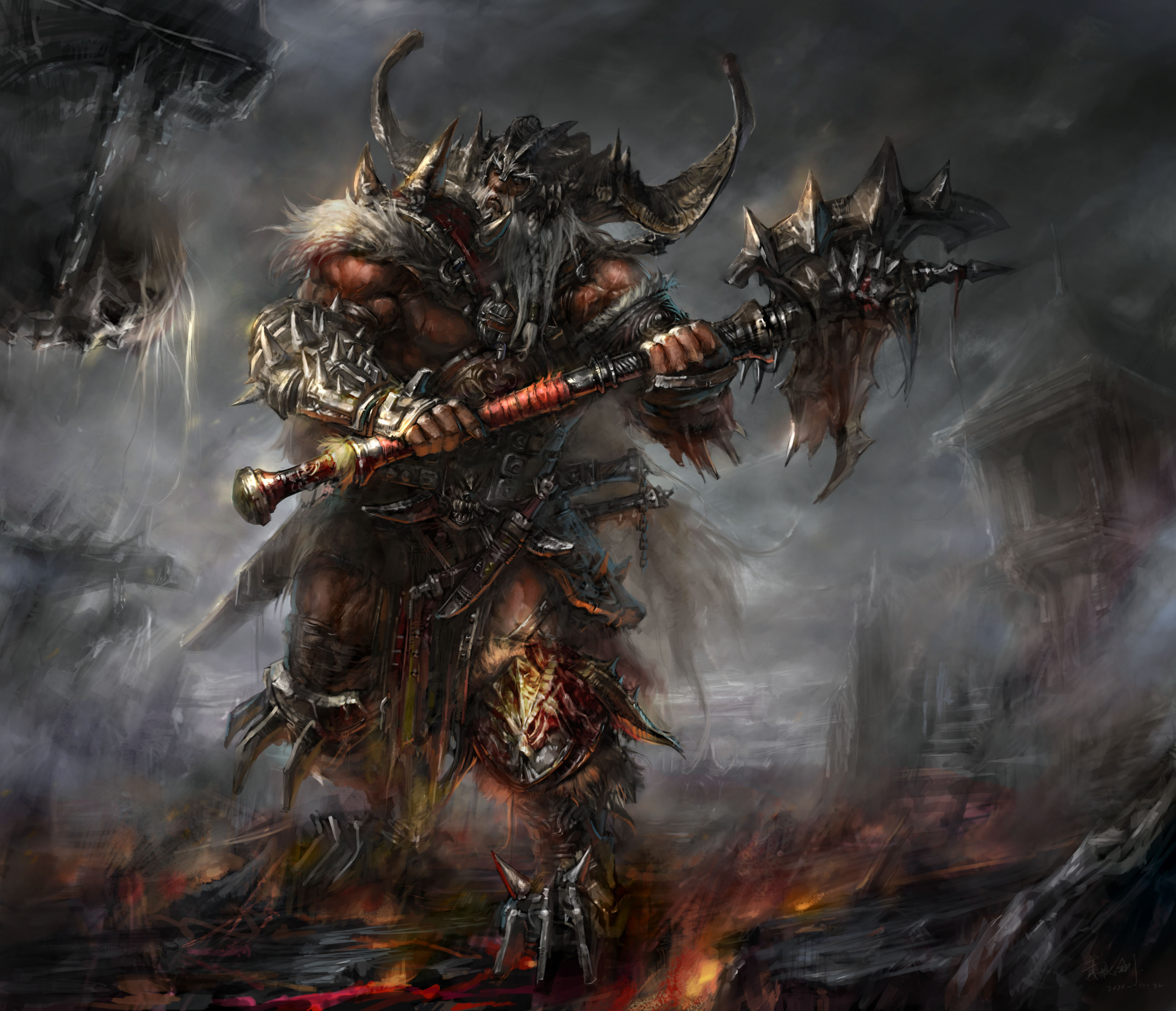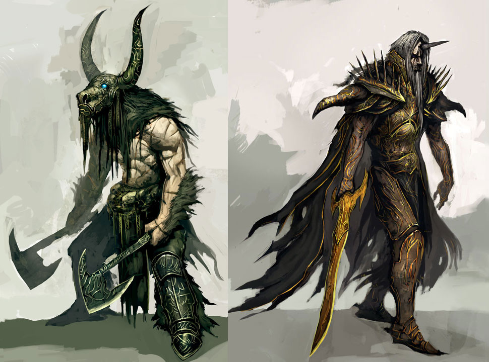 The minotaur in the comp is from Guild Wars Factions expansion and is one of the Envoys. Spirits that has done terrible crimes in their lives and is now cursed to forever sheperd the newly dead through "The Mists". In other words, they are pretty ******* cool.