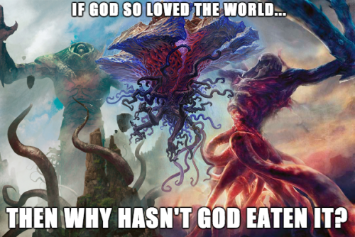 The Eldrazi are ****** terrifying as a concept. Like seeing cards like Touch Of The Void where you see a guy's arm turning to dust and he's just in so much ****** pain