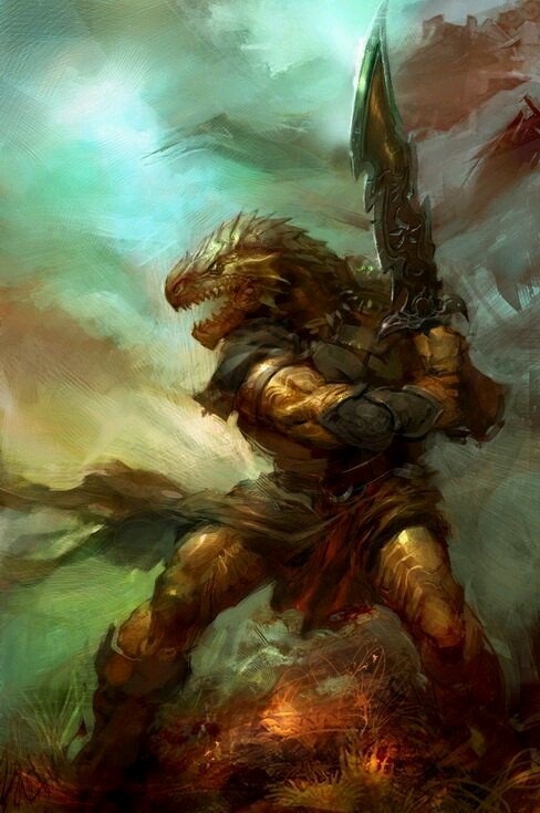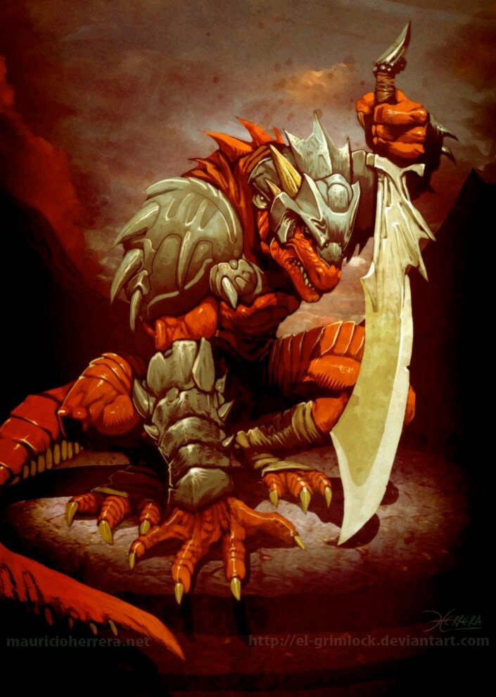 Most of these are inspired by the Dragonborn race from Dungeons & Dragons, Some are from officially licensed products while I assume the rest are fan-made.