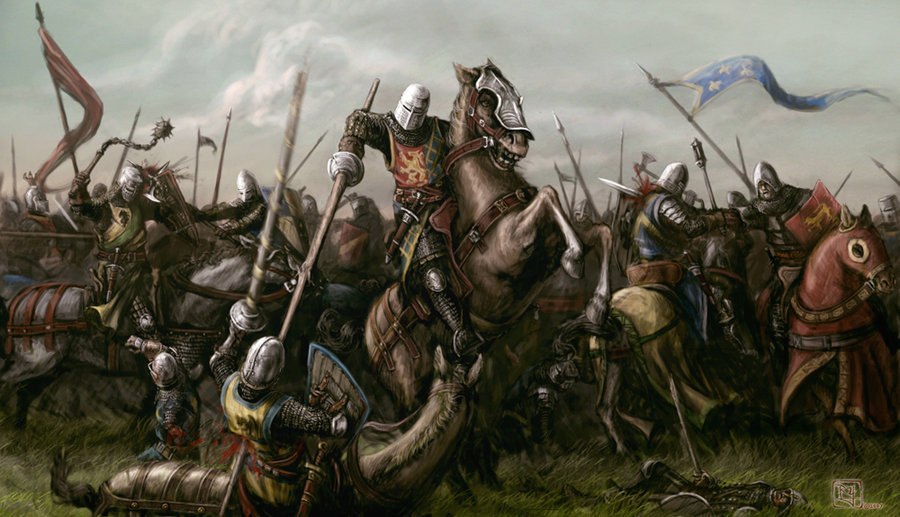 Generally this applies to both sides, when one of the crusades reach the opposing factions homecity they will begin to desolate nearby forests and villages for supplies in order to support the war efforts. Depending on the severity of the Kings orders your crusade may not take any prisoners whatsoever. After some preparation time over the coarse of days the crusading force will initiate the siege, however before doing any of this make sure you take the original army number, half it and make that the populace, then take the retreating forces survivors and add them onto the populace number. Once the siege begins either place the PCs in a Siege Tower or have them sap into the sewer system of the city and attack from below with a surprise force, if someone so desires they may be catapulted into the city if there is a lake within the walls. There is generally three stages of a siege, The fight for the walls, the Pillaging of the outlying buildings and houses and the fight for the inner walls, then the final assault on the hold begins. PCs can speed this up by forming a smaller group once in the city and by trying to sneak into the main hold, even if the king is slain still do casualty calculations since from a role-play standpoint the soldiers outside the hold will be unaware of the defeat of their king. In mass battles soldiers are sometimes given different sounding horns, if you want to avoid damage calculation on the populace any further have a PC blow a victory horn from atop the hold. This will save you a lot of un-necessary number crunching.