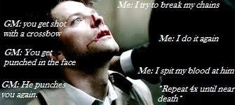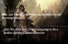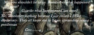 This happened while we were interrogating a prisoner whom our cleric had accidentally (not really) tortured. just a little bit. but hell while I was saying that first line I got a 28 so the guards were chill.