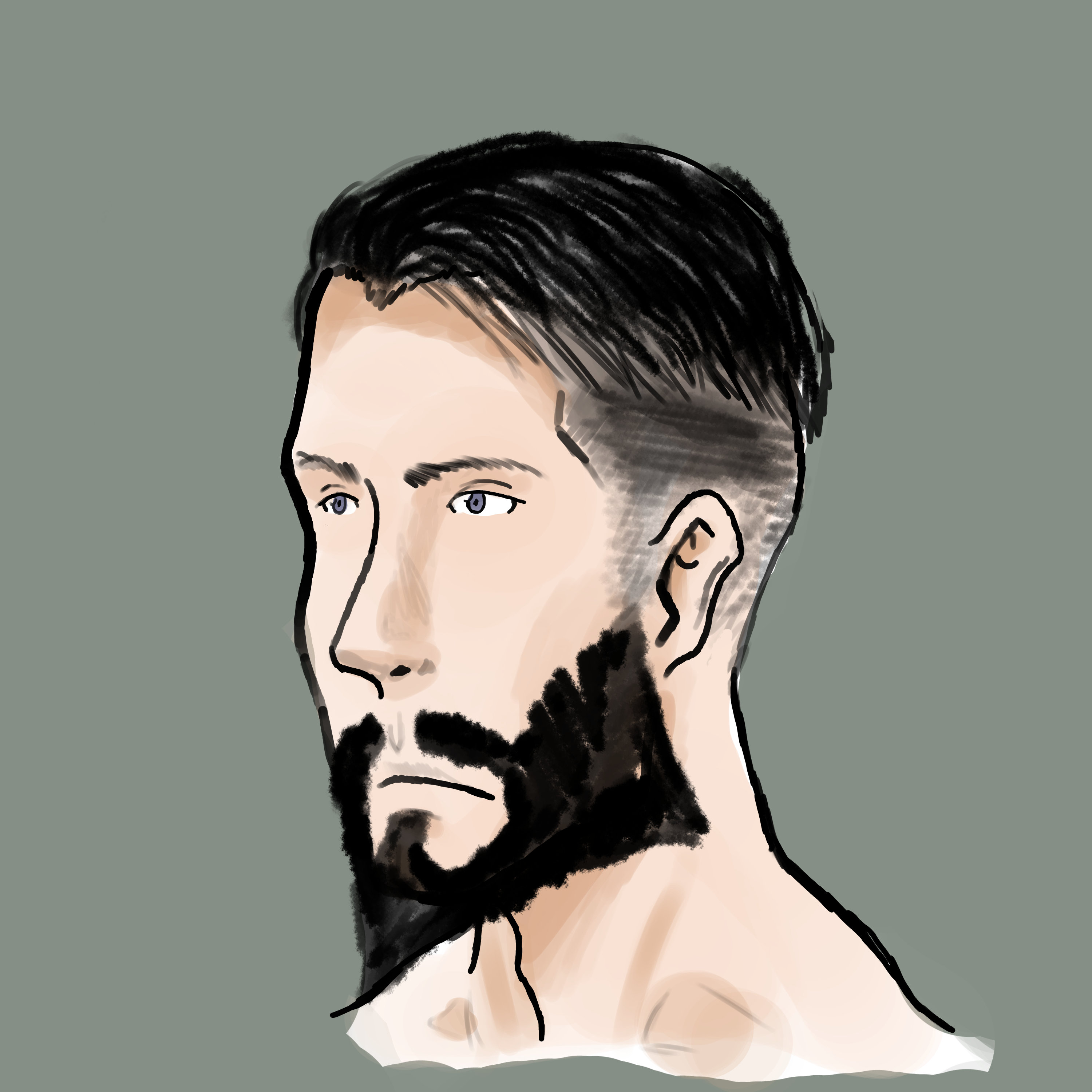 I made four versions: one bearded, one cleanshaven for both the white and grey backgrounds.