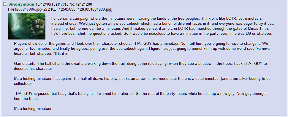 Minotaurs and That Guy. You would think he'd get the hint the first time.. I Anonymous "IO/ la/ loodee))) Kla, 1250x898, ) I once ran champaign where the minota