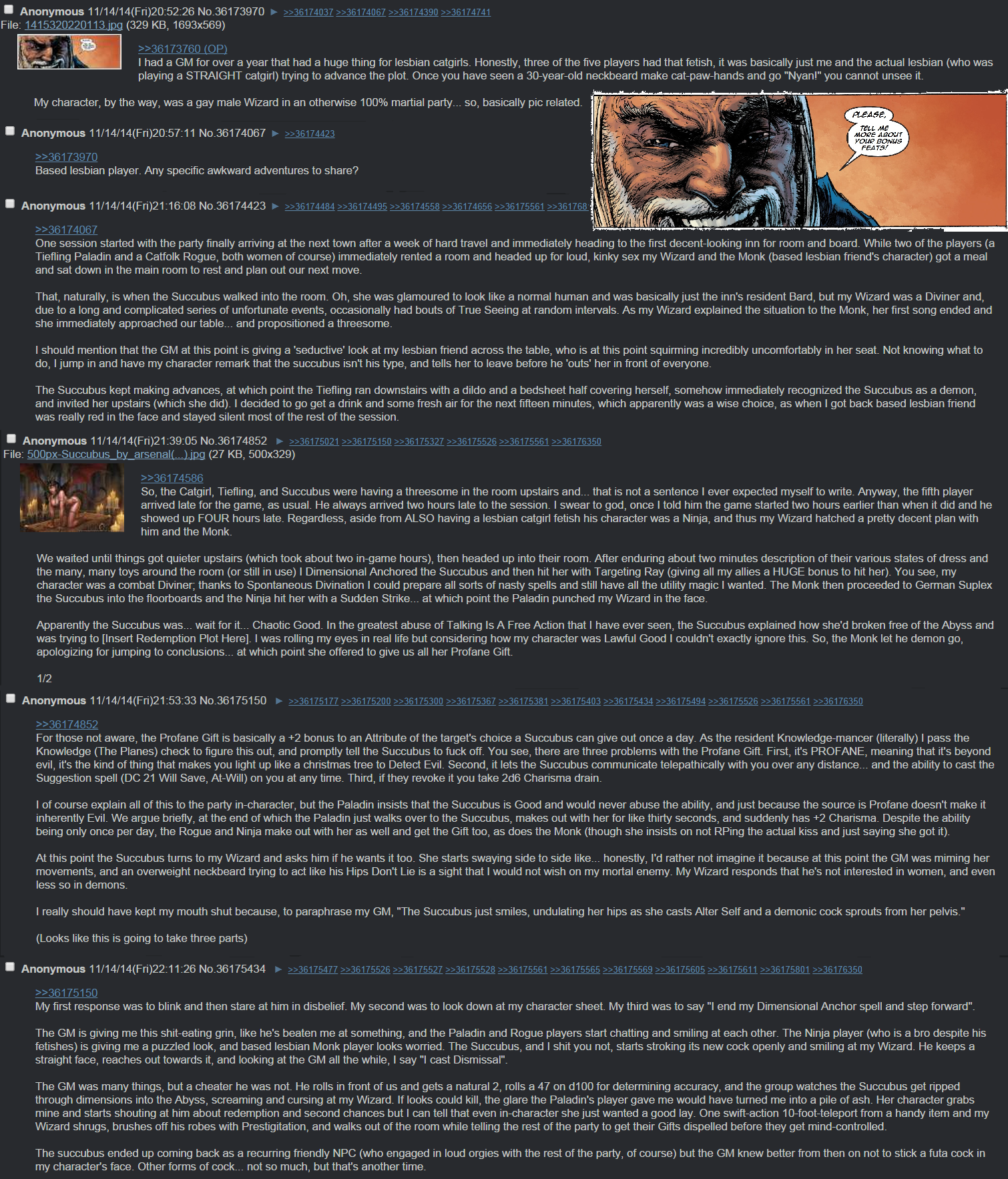 At this point the Succubus turns to my Wizard and asks him If he wants l too She starts swaying side to sue like honestly, I' d rather not amagine it because at this paint the GM was mrmyne her