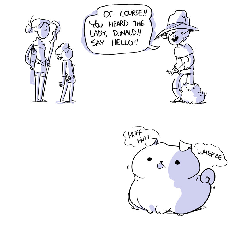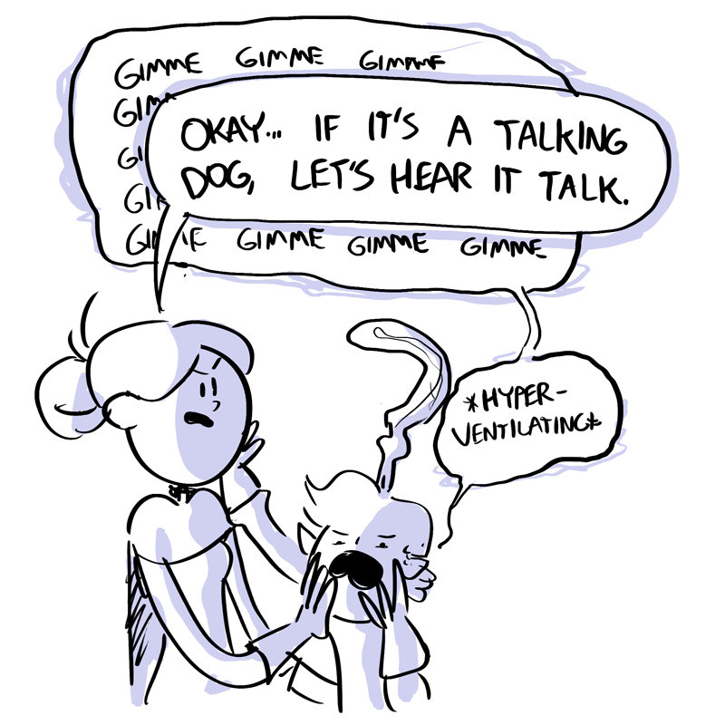 “Lo, brave adventurers! Have you the mettle to take upon ye this noble que-AAHH” “SKREAUGUGHGHH” (violent noises)