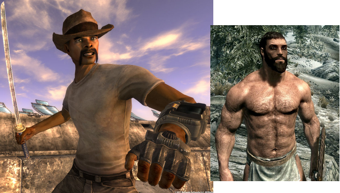 I don't give a **** about strongmen and bodybuilders. We're comparing The Courier to The Dovahkiin. Show me a strongman with the body on the left. You can't be strong and have NO MUSCLES. That's not possible.