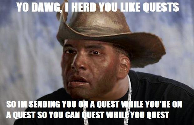 There were about 15 non-faction related sidequests in Fallout 4. I have 100 hours in, got all the Bobbleheads, at least 1 of every suit of Power Armor, and did most of the interesting stuff the game has to offer. I'm running out of **** to do fast. The DLC cannot come soon enough. To get all the achievements I have to level up one more time, kill some more Mirelurk Queens, craft 100 items, and get the happiness in a large settlement up to 100%.