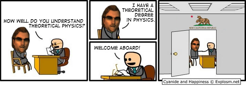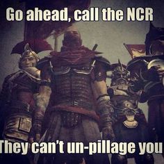 I think it's more like "can't read." You hired an obvious idiot to run a pre-war power plant, have inept military intelligence ( a poor hostage negotiator, bumbling bureaucrats, etc.), and struggle to cultivate proper agriculture without the use of Super Plant Monsters. The Legion, however, have excellent cartography for trade route establishment; basic yet uncomplicated understanding of economics, trading with stable hard currency (Inflation can kiss my ass, NCR Dollars); actually write out well-detailed documents for even simple transactions like slave trades, leaving no room for clerical error; every male is a soldier with in-depth knowledge in wilderness survival, carpentry, metalforging (how else would would they build boats and forts), emergency medical practice, weapons repair, basically even a grunt is on par with an NCR Ranger; and while not everyone's a Legatus, the Legionaries obviously know military tactics. On top of being self reliant, all Legionaries know three languages: Latin, English, and their own tribal dialect. Basically, Caesar's Legion is chock full of academic brainiacs and Rambos, and NCR is just retarded.