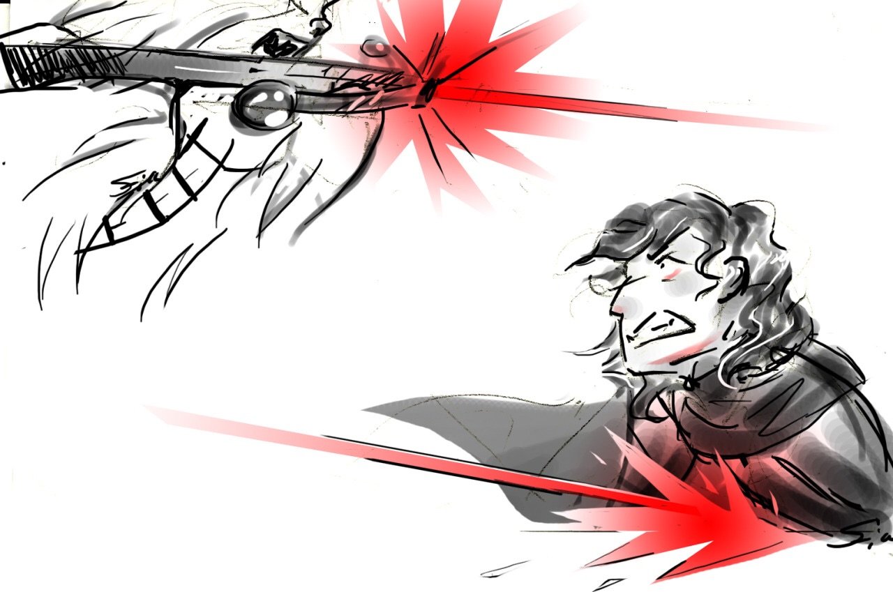 The guy being (Ren) shot is the baby in the first panel.