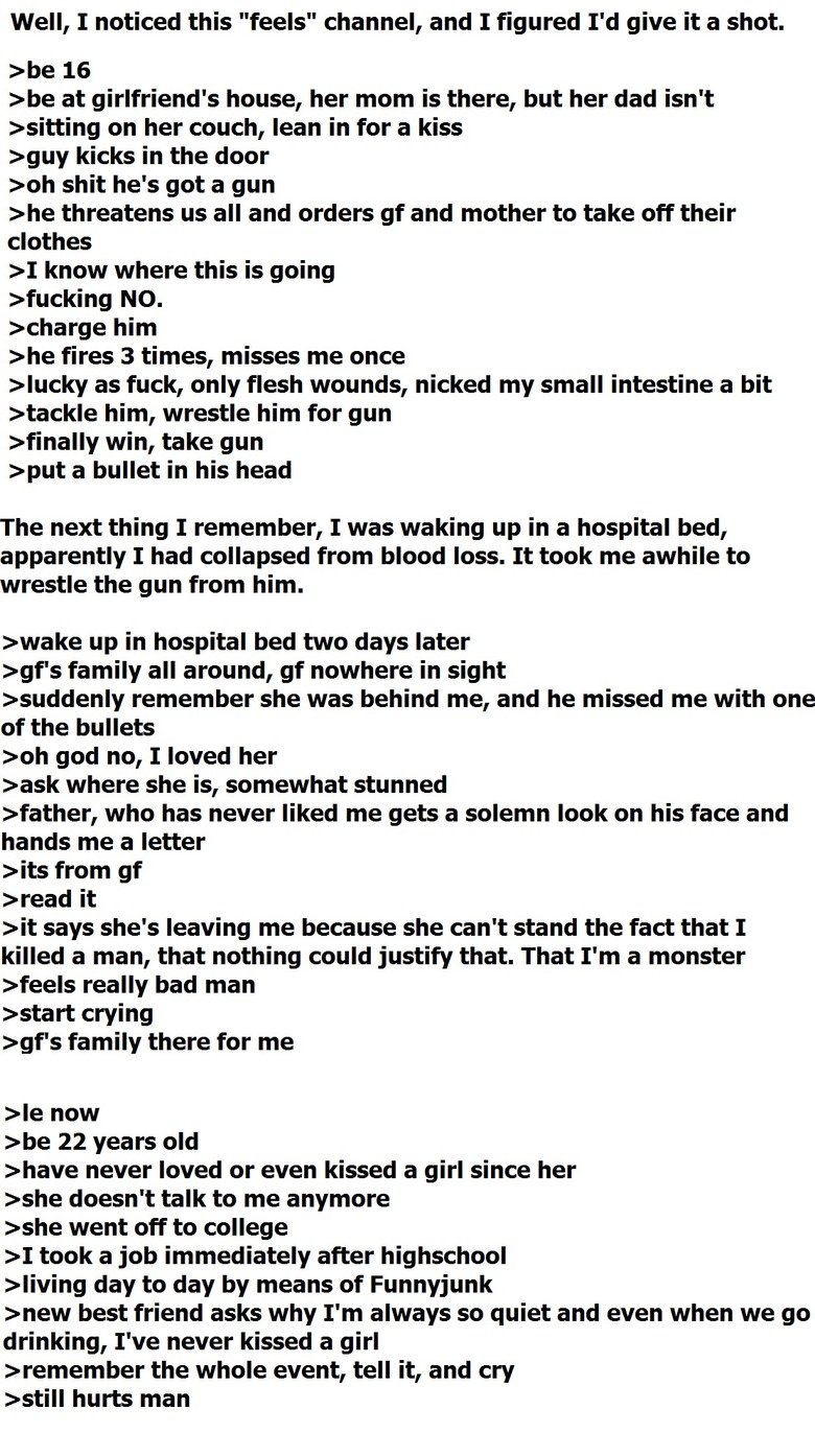 Well, I noticed this "feels" channel, and I figured I' d give it a shot.